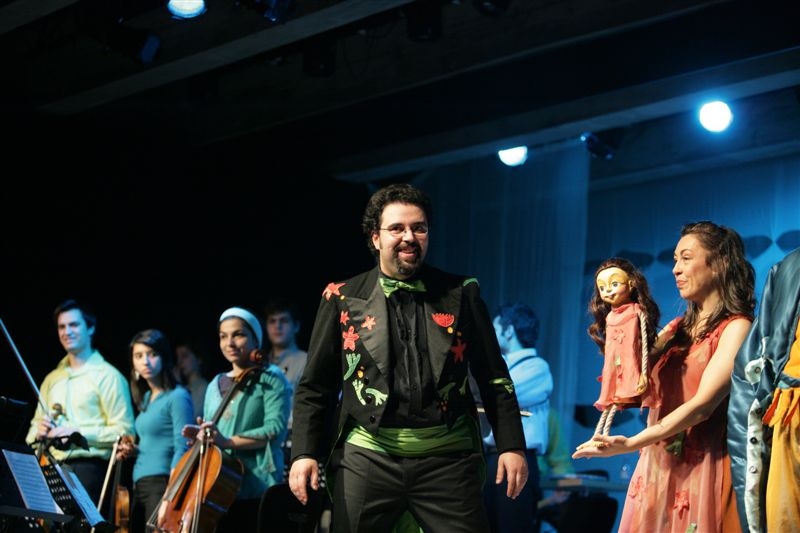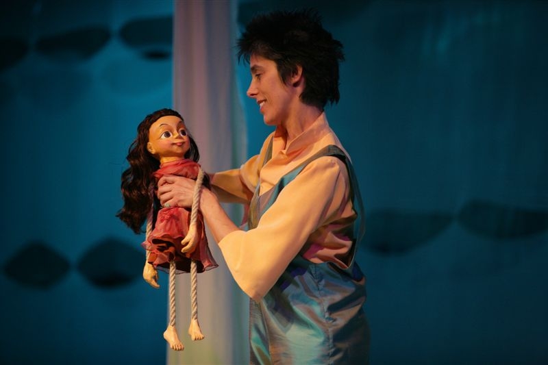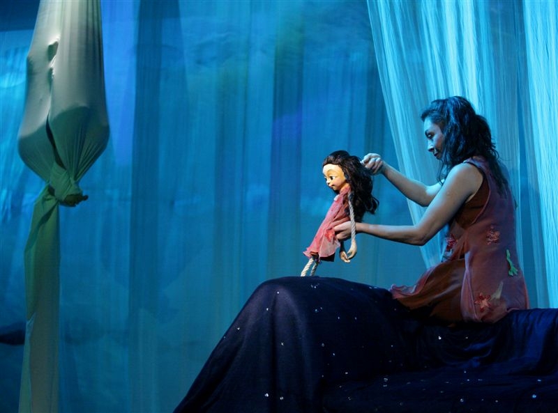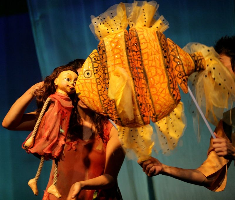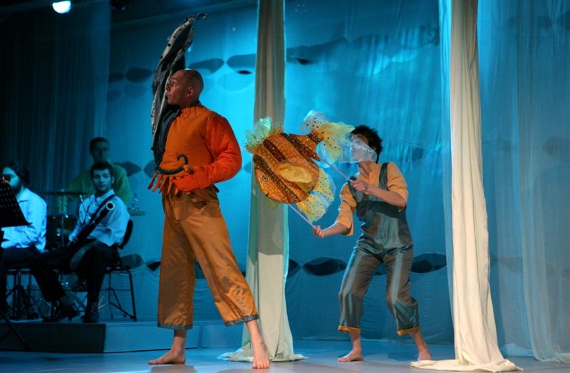 E foi este o desafio que nos foi proposto – pôr em cena este maravilhoso texto em conjunto com a música que ele inspirou, composta para uma orquestra de câmara. Ficámos encantados com a ideia. Onze músicos ao nosso lado no palco. Mas como iamos criar uma relação cénica entre actores e músicos, entre teatro e música ao vivo? Recortámos o texto da Sophia para uma melhor adaptação cénica, tentando manter toda a sua força poética. Reunimos com o Maestro Rui Pinheiro. Percebemos que actores e músicos tinham de ser cúmplices nesta aventura. Começámos os ensaios e pouco a pouco, dia a dia, Menina do Mar ganhou vida. Através da inter-relação entre actores, marionetas, músicos e vídeo o espectador é envolvido pela dicotomia entre os mundos da terra e do mar. A música reforça a fantasia da palavra.